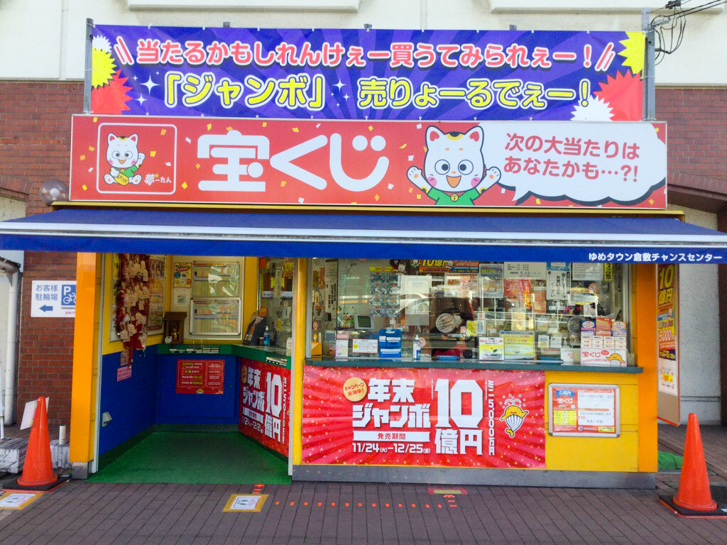 億万長者も出ている「ゆめタウン倉敷チャンスセンター」は国道2号岡山バイパスと市道古城池線沿いにある開店40年以上の歴史ある老舗の宝くじ売場です。