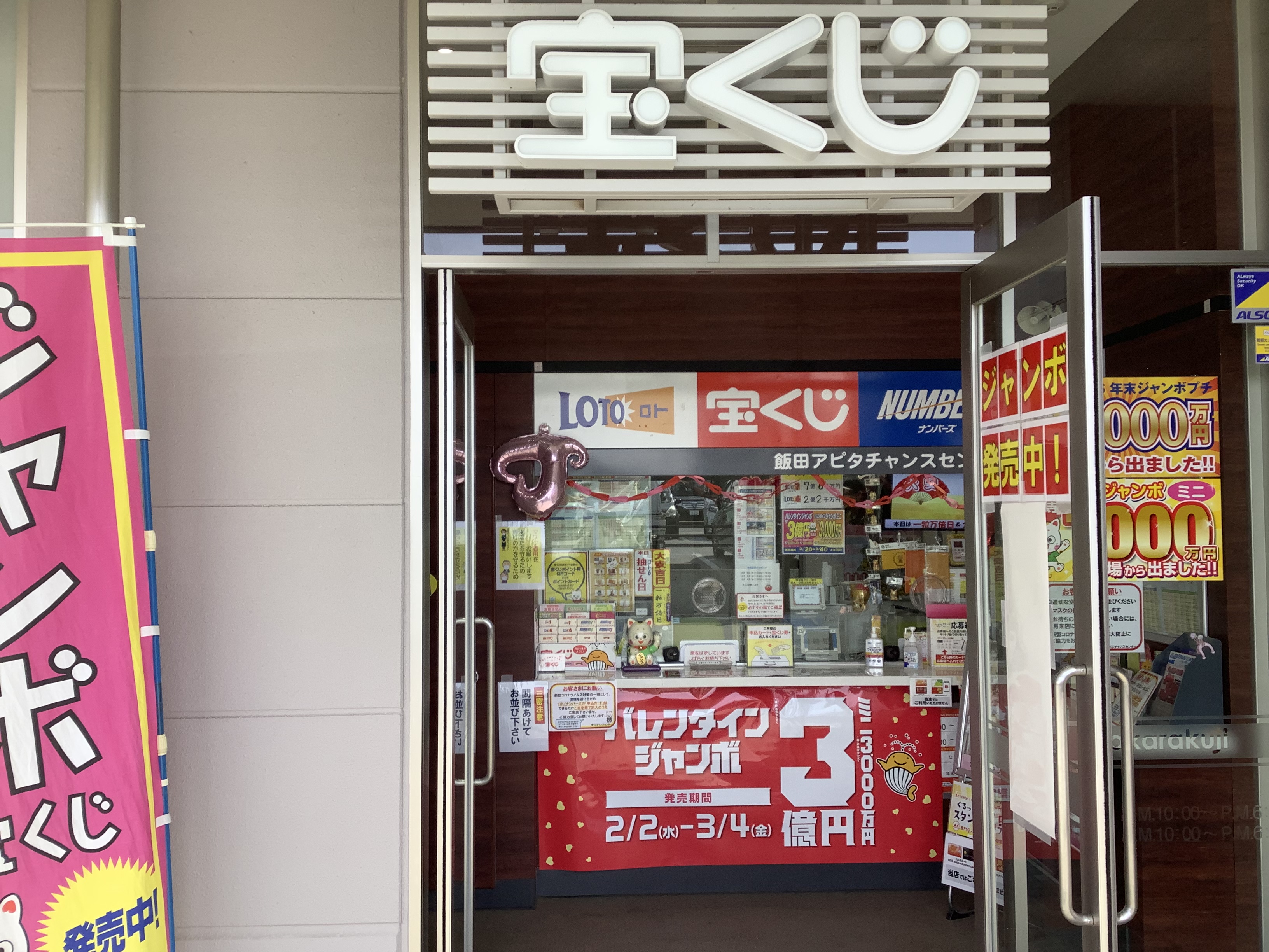 国道153号線(通称アップルロード)沿いのショッピングセンター入口横にある宝くじ売場。新しくて綺麗な宝くじ売場です。リニューアルオープン以来、ご来店頂くお客様が年を追うごとに増えるなど今注目の売り場です。