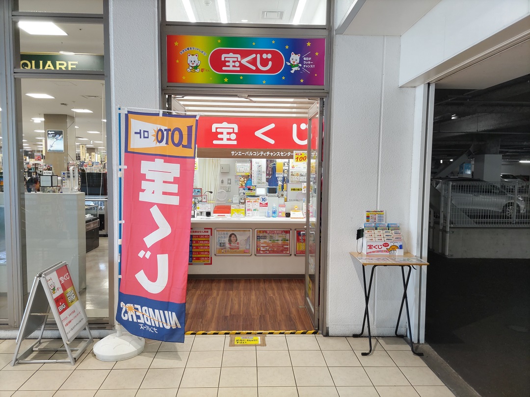 浦添市のショッピングモール「サンエー浦添西海岸 PARCO CITY*」にある宝くじ売場。