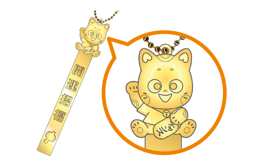 これぞ決定版!『開運招福』スクラッチくじを削るのに最適な一品。重さは約30gで亜鉛合金製の素材に高級感のあるゴールドメッキ加工、ボールチェーン付き。