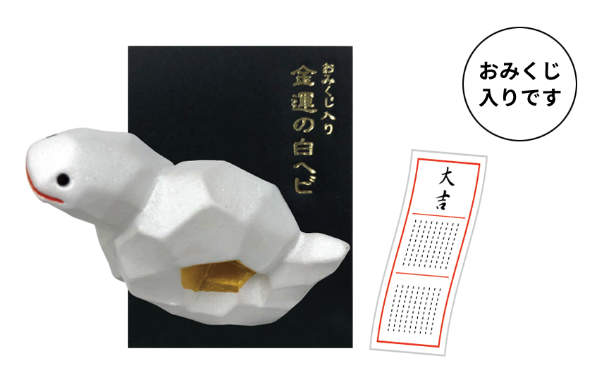ご存知、白ヘビといえば金運。ヘビであってもちょっと可愛くしあげました!金運招来の縁起ものです!