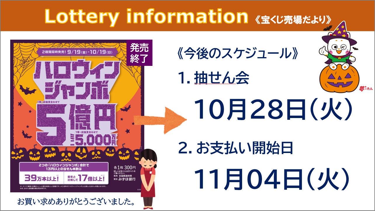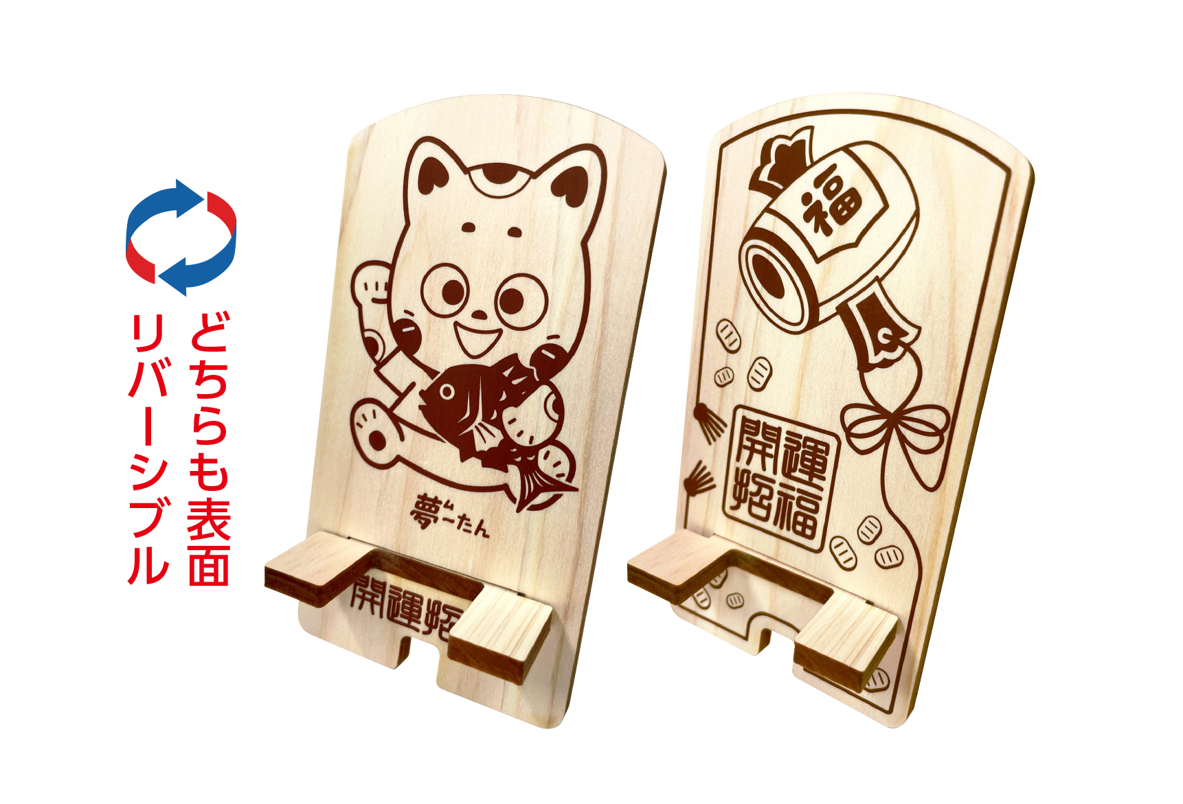 鯛を抱えた「めでたい夢~たん」・「打ち出の小槌」どちらも表面というリバーシブルです。素材は総檜(ヒノキ)ですので香りもグッド!購入した宝くじ券調べはしっかりスマホで!