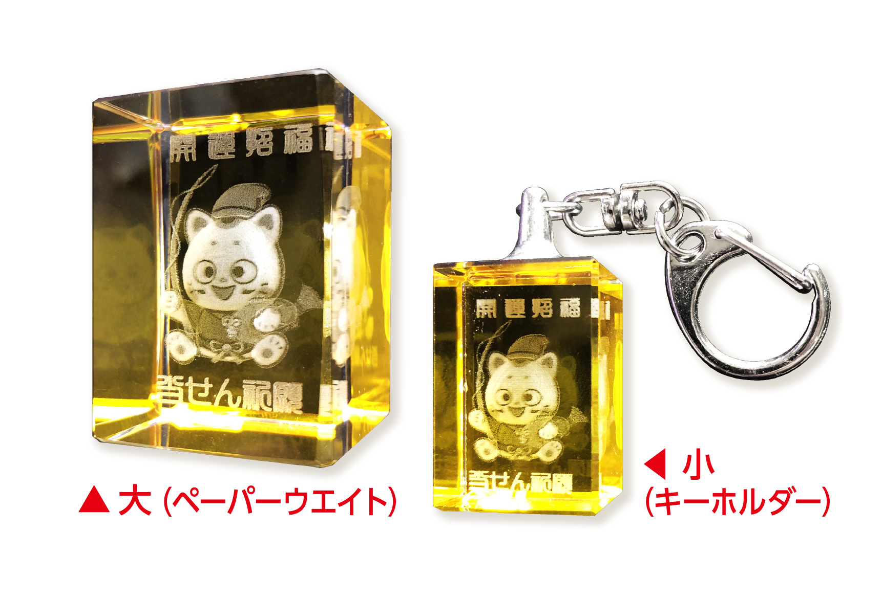 縁起の良い七福神・恵比寿装束の夢~たんを3Dレーザー彫刻。宝くじ券に載せてペーパーウエイトにもしながら当せん祈願する置物タイプと常時携帯可能なキーホルダータイプの2個セット。下から光をあてると3D彫刻が浮かび上がります。