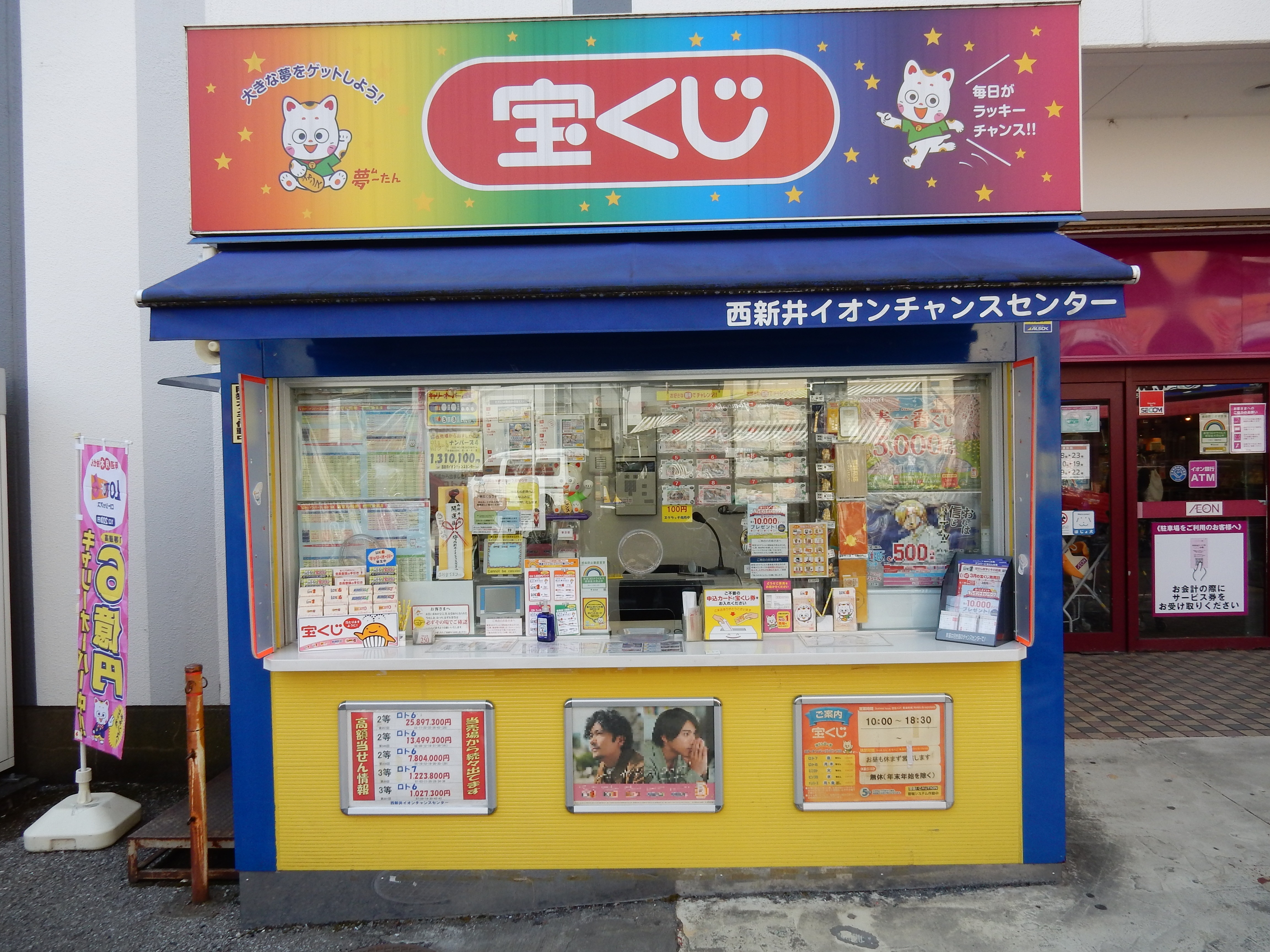 東武スカイツリーライン西新井駅東口から徒歩1分の、「西新井イオンチャンスセンター」は、関東三大厄除大師として有名なパワースポット西新井大師の南東約1キロに位置する宝くじ売場です。