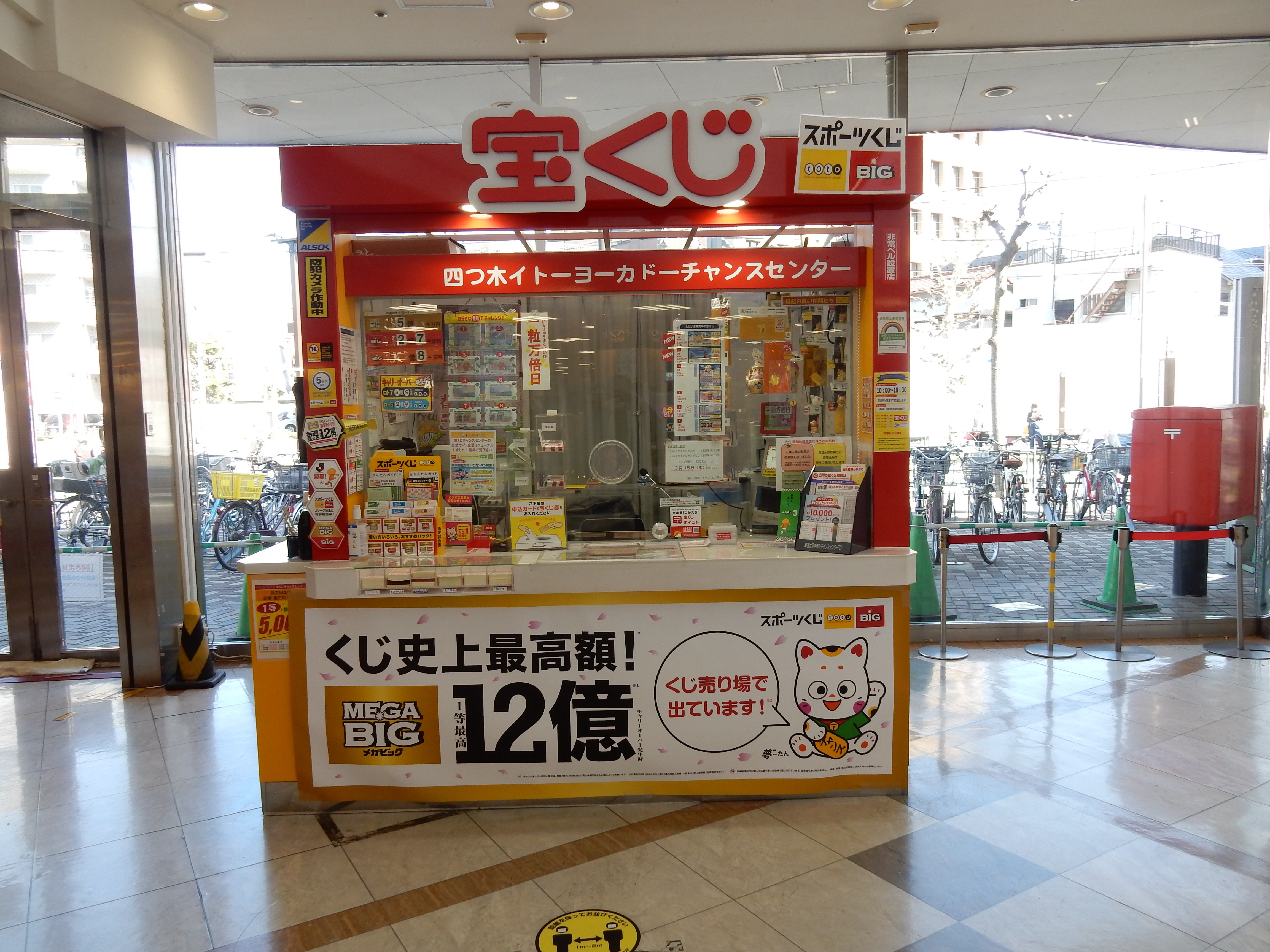 四ツ木は、人気漫画『キャプテン翼』の原作者である高橋陽一先生のご出身地であり、『サッカーの聖地』と言われています。京成線四ツ木駅では『キャプテン翼』の世界観が楽しめます。そんな四ツ木駅から徒歩圏のイトーヨーカドー四つ木店内に『四つ木イトーヨーカドーチャンスセンター』がございます。ジャンボ宝くじはもちろん、サッカーファンにはたまらないtoto、BIGも取り揃えて皆さまのご来店をお待ちしております。