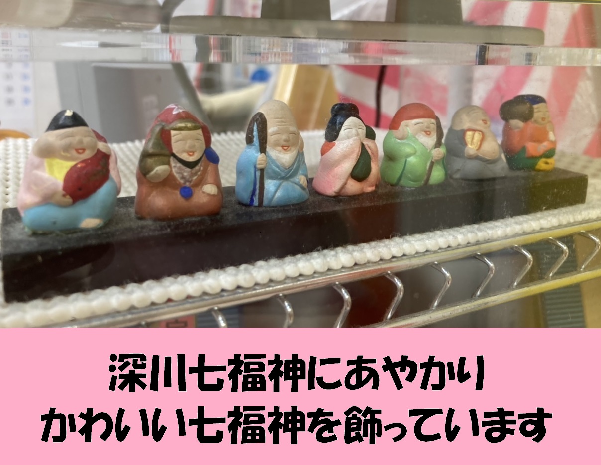 メトロ東陽チャンスセンターでは、深川七福神にあやかり、カウンターの上に七福神の一人、金運アップの