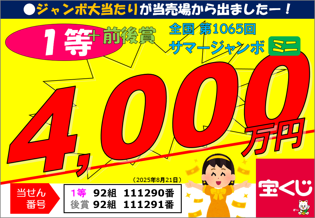 第1065回サマージャンボミニ1等前後賞10,000,000円