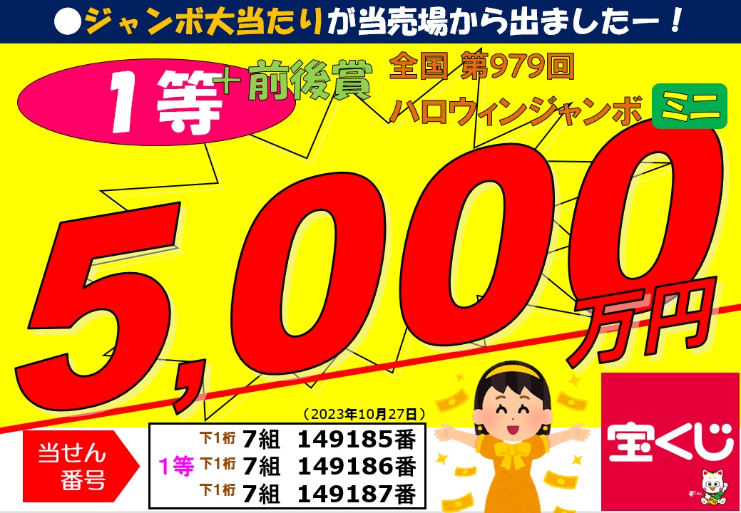 第979回ハロウィンジャンボミニ1等前後賞10,000,000円
