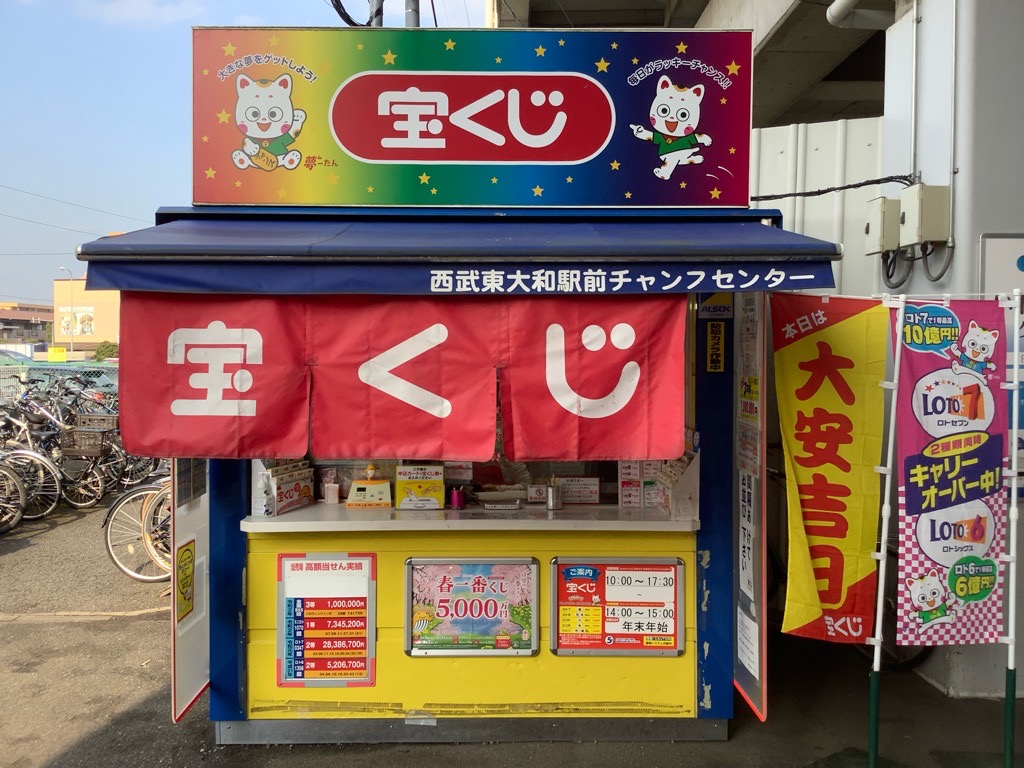 西武拝島線東大和市駅の改札前にある「ゴールデンイエロー」の売場が西武東大和駅前チャンスセンターです。売場近くには東京都内でただ1か所の「東京都薬用植物園」や玉川上水沿いに作られた「玉川上水緑道」があり四季を通して自然を楽しむことができます。そんな自然のパワーのご利益か、開店以来の高額当せん総額は1億3千万円超!自然のパワーを感じて、億万長者を目指しませんか?