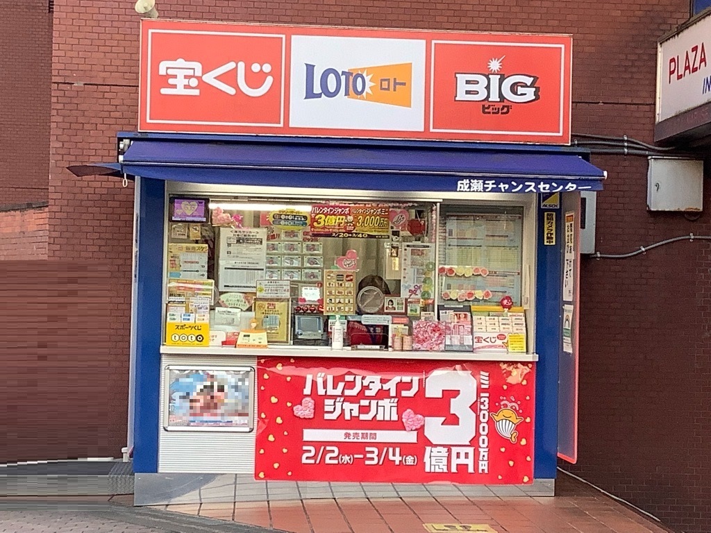 「成瀬チャンスセンター」は、JR横浜線町田駅から横浜方面へひと駅、「成瀬駅」改札から50メートルのとっても便利な駅近売場。電車の時間を気にせずに、ゆっくり宝くじのお求めができますよ。スポーツくじ(BIG・toto)も販売しており、何と、BIG 1等の当せん実績もあります。皆様のご来店をお待ちしております。