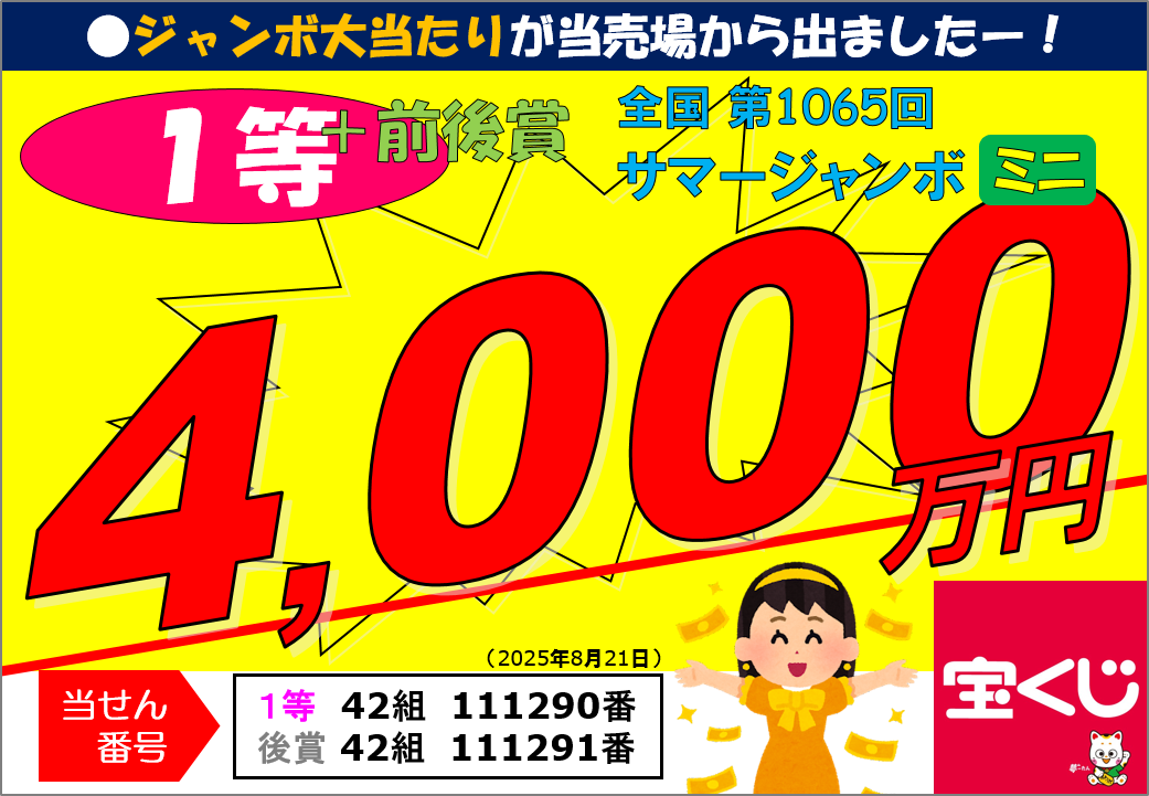 第1065回サマージャンボミニ1等前後賞10,000,000円