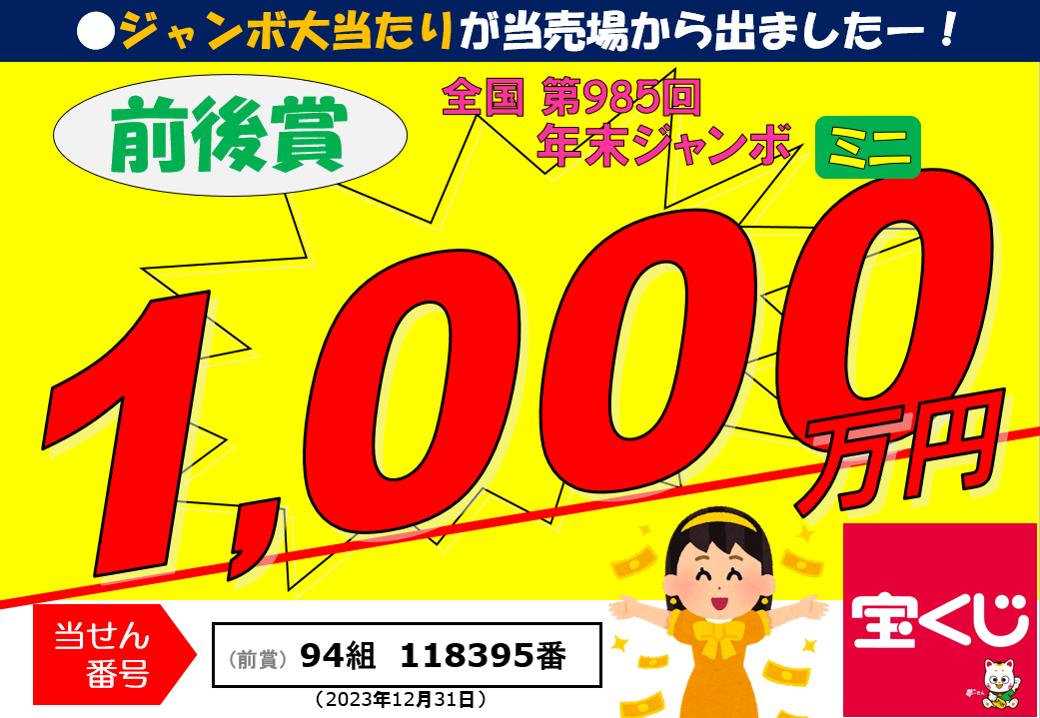 ジャンボ販売期間中・年末年始などは状況に応じ、営業時間を変更する場合がございます。