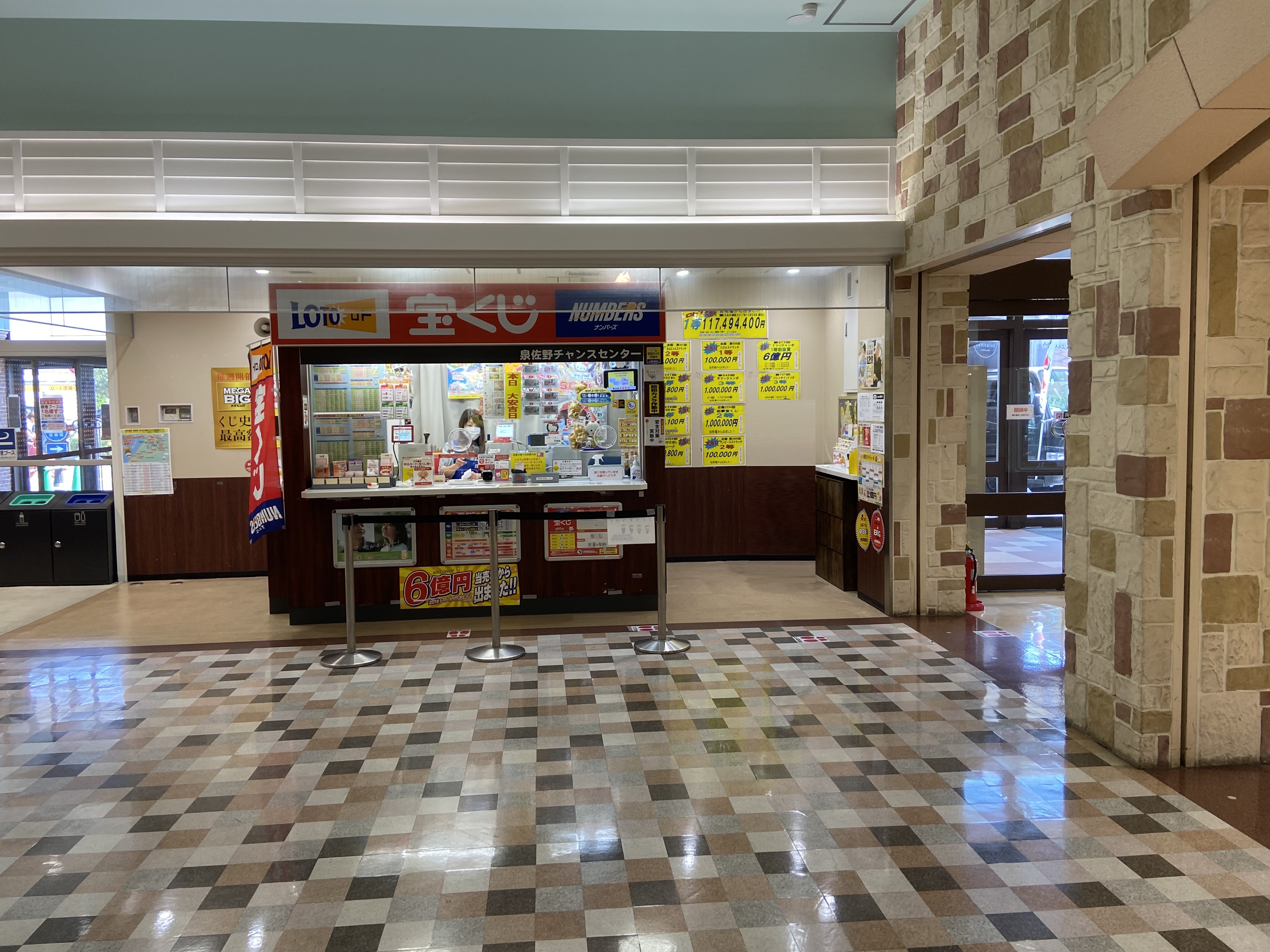 2019年に世界遺産認定された仁徳天皇陵等百舌鳥・古市古墳群を擁する大注目『ゴールデントライアングル(年末ジャンボは2017年から3年連続1等当せんが出る等、注目を集めている)』内の大型ショッピングモール『いこらも~る泉佐野』にあるチャンスセンターです。開店当初から毎日遅くまで営業しており、堺市以南ではジャンボはもちろんのこと、全ての最終日の宝くじが最後の最後「残り福」で買うことができるラッキーな【大当たりが出やすくかつ残り福満載の】売場として、多くのファンから親しまれています。そして近くにある平安時代から地元の神様を祀っている『奈加美神社』は、泉州名産の「水ナス」をモチーフにした土鈴『成就なす』で有名。まさに、高額当せんの大願成就も間違いなし!!!大当りを願って『成す』を鳴らしに「いこらに行こか」。