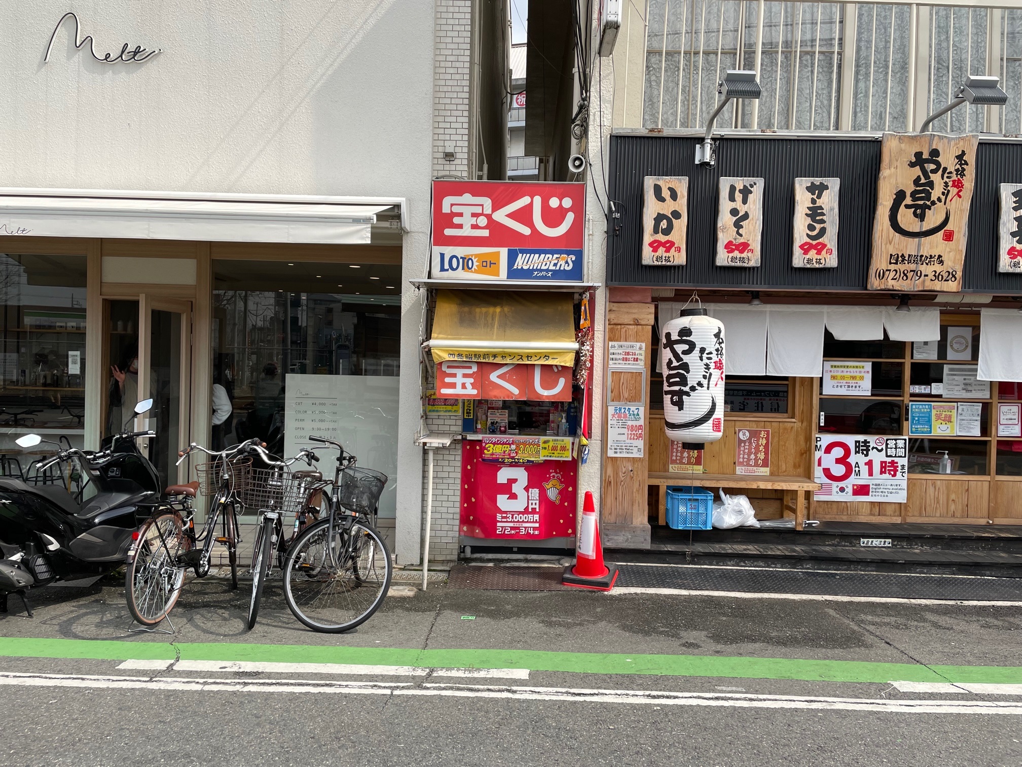 当売場は建物と建物の間の隙間を有効に?利用したつくりとなっており、1mを切る間口は自称「日本一狭い売場」です。売場の近隣には「なにわ七幸(しちこう)めぐり」(大阪を代表する神社仏閣を訪れ七つのご利益をさずかる聖跡巡礼)で有名な心願成就の「四条畷神社」があります。巡礼の際には是非、自称「日本一」の売場にも立ち寄ってみてはいかがでしょうか!きっと何かが起こるかも?