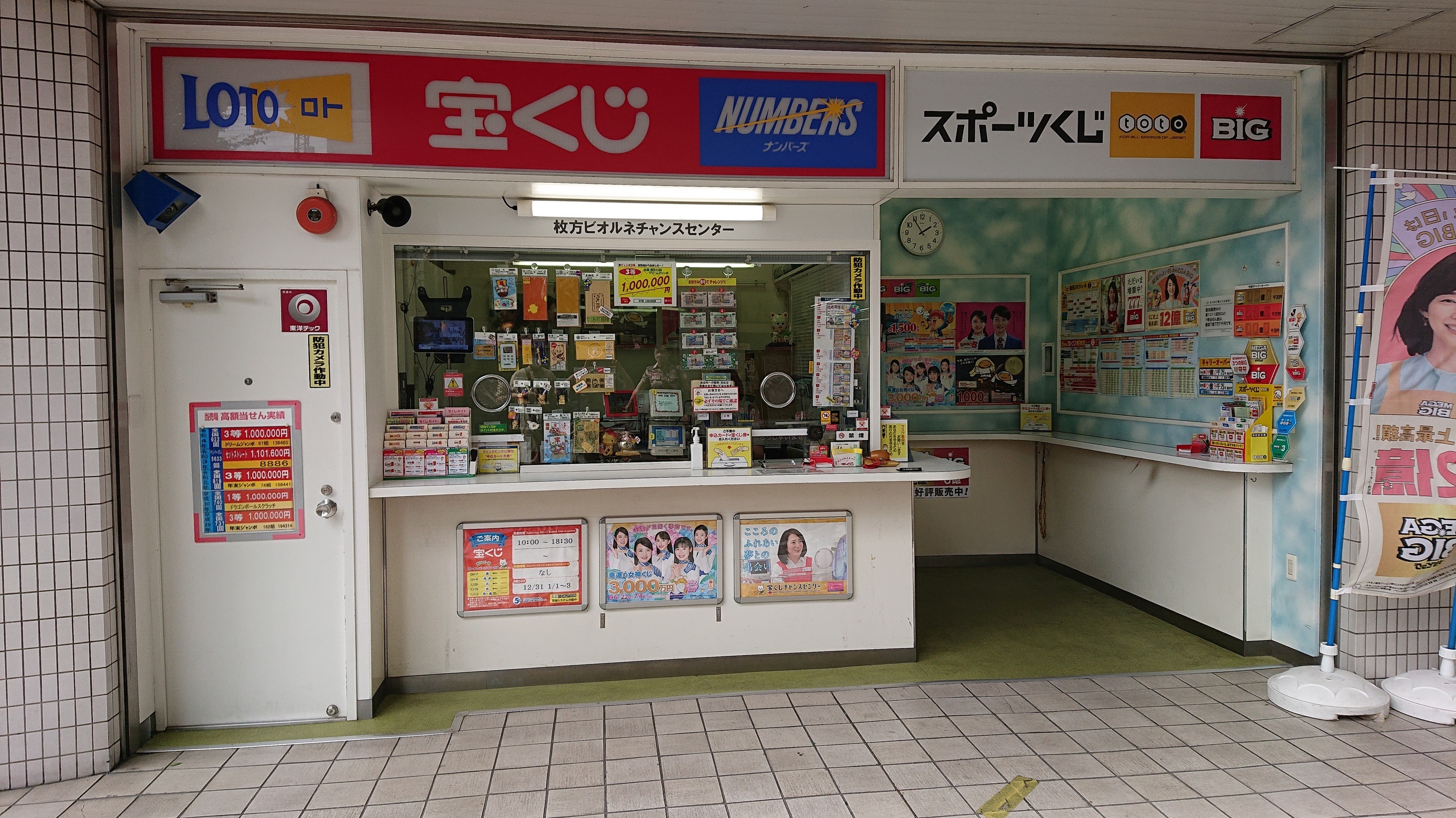 枚方市駅から近く、枚方ビオルネ店1階の外側に面したところにあります。江戸時代は枚方宿があり、売場前の道路は大阪と京都を結ぶ京街道でした。諸大名が参勤交代で使っていた道です。京街道という歴史がありロマンを駆り立てられる街道にある宝くじ売場に是非、足を運んでいただき、夢を叶えていただきたいと思います。売場には、ラウンジがあり広いのでナンバーズ、ロトの申し込みカードの記入もラクラクです。また、2022年3月14日からスポーツくじ(toto、BIG)の販売も始まり、ますます便利になりました。皆様のお越しを心よりお待ちしております。