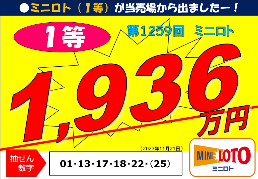 第1259回ミニロト1等19,362,900円
