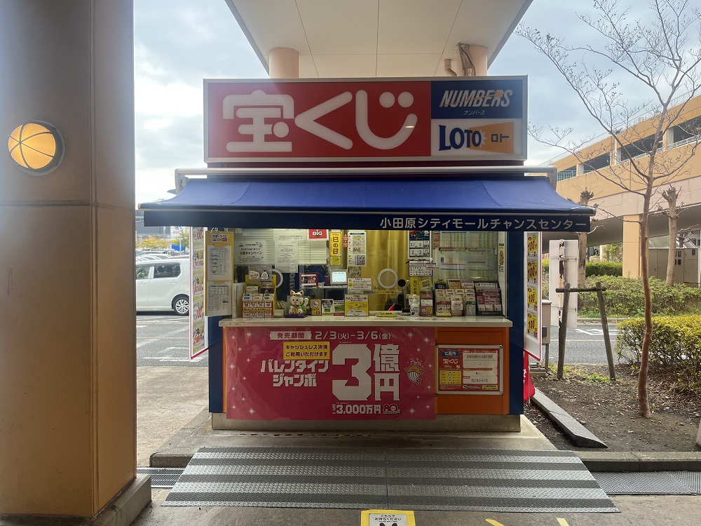 小田原市の東部の大型ショッピングセンターの南館にある明るい売場です。スポーツくじ(totoBIG)ファンも集う店です。