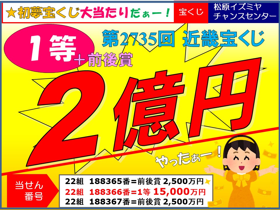 2025年9月新設の新しい売場、旧松原イズミヤチャンスセンターの運を運んで、大阪南部にある百舌鳥・古市古墳群の世界遺産エリア『ゴールデントライアングル』内にある10売場の一つです。