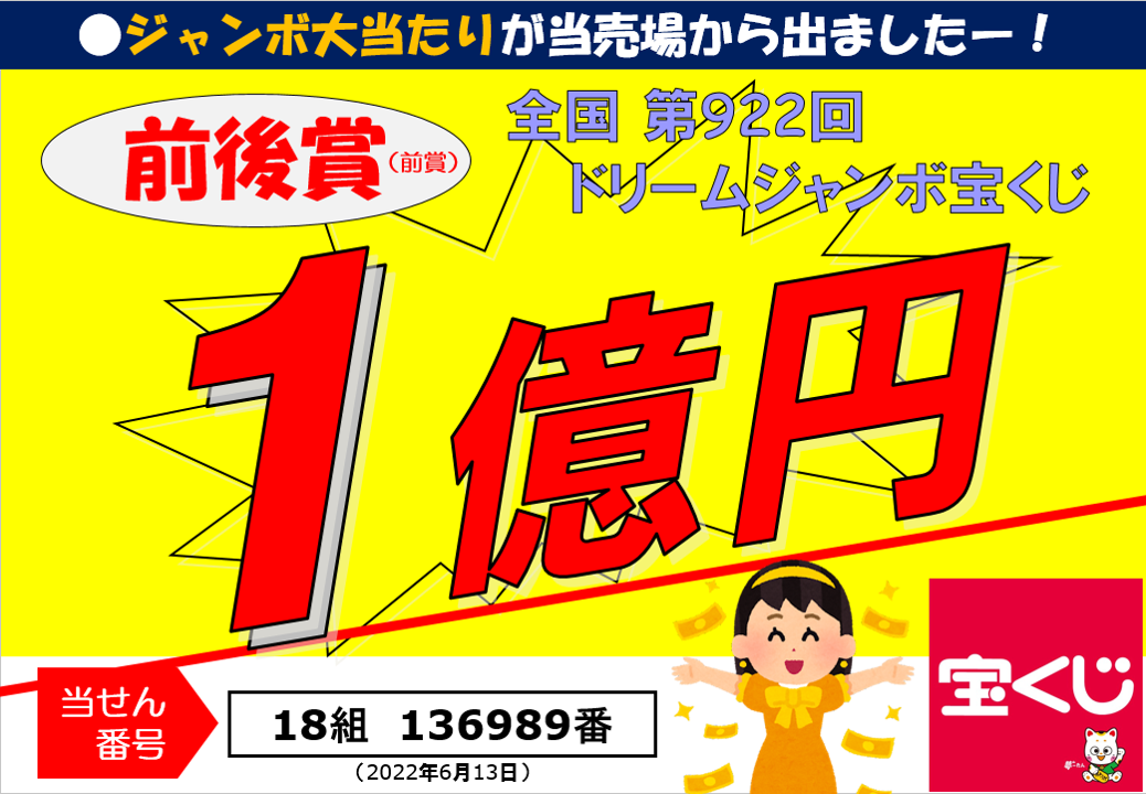 第922回ドリームジャンボ1等前後賞100,000,000円
