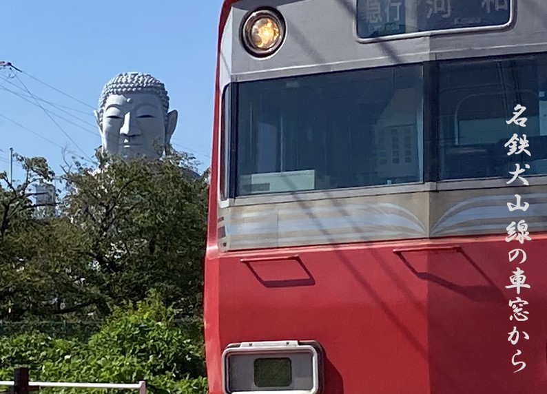 電車の中から突然車窓に現れる巨大な大仏さま!
