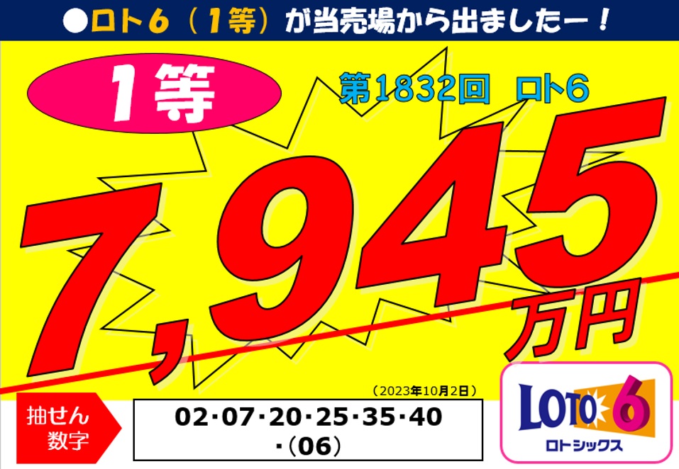 第1832回ロト61等79,450,400円