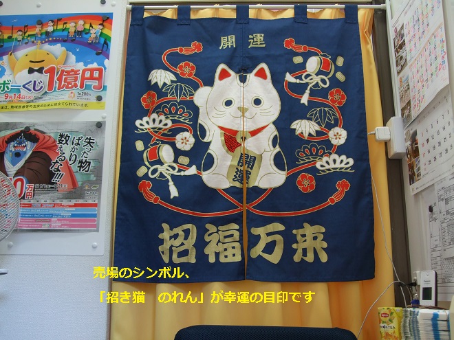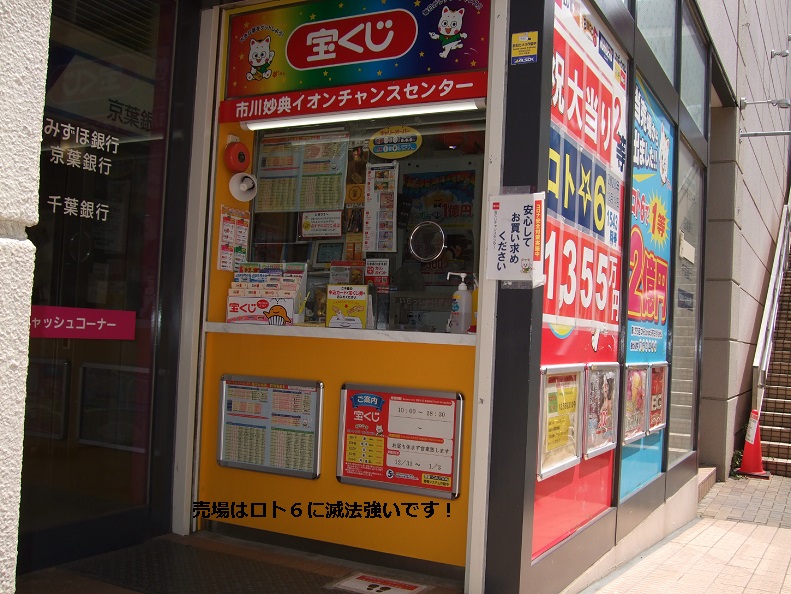 市川妙典イオンチャンスセンターの最寄駅は東京メトロ東西線の妙典駅。 江戸川河口にもほど近いここ妙典の地名の由来は法華経が「妙なる経典」という意味で地名にしたと言われ、周囲には「妙」のつく「妙好寺」・「妙頂寺」始めちょっと気になる「常運寺」など20か所近い寺院が密集。当せん祈願にも最適なお寺が立ち並びます。 又、近辺には「宝」・「幸」・「末広」・「富浜」など宝くじファンには気になる地名もいっぱい。 更にはご成婚前に両陛下がよく訪れられたという「宮内庁新浜鴨場」からも近く、週刊誌にも掲載された幸運の売場です。 是非、お立寄りくださいませ、目印は可愛い「招き猫 のれん」です。