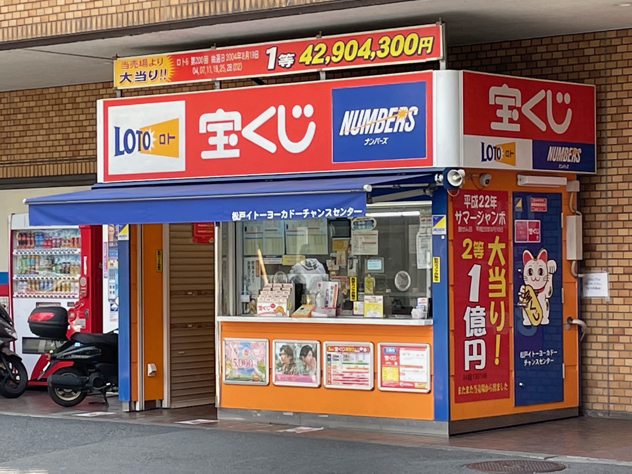 JR松戸駅から南へすぐ。 当たりの多い地域ナンバーワンの売場です。 幸運の売場で運試し! 是非、お越しくださいませ。