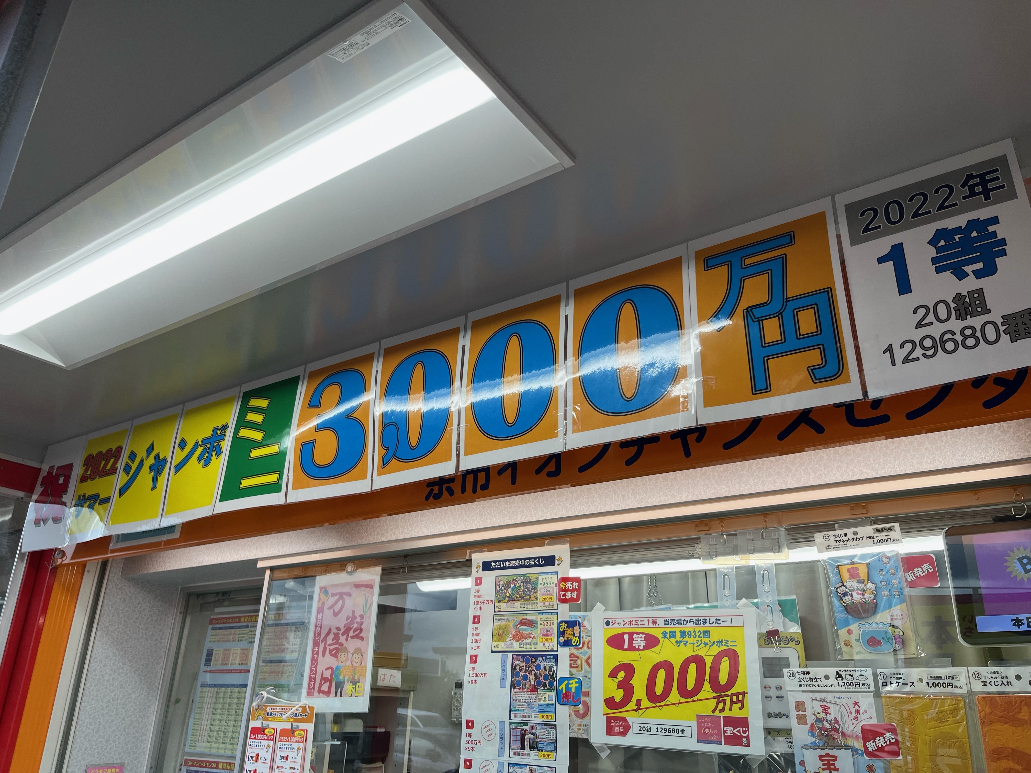 大変縁起の良い土地にあるこの売場は高額当せんが多く出ておりますが、またまた出ました!2022年のサマージャンボミニで一等「3,000万円」の「大当たり」が出ました!!