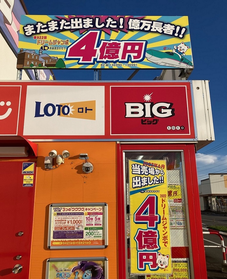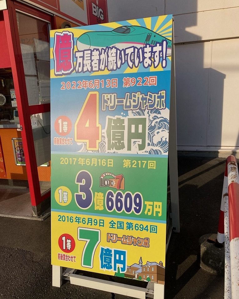 2020年には売場横に設置している古くなった「大当たり立て看板」を一新し、運気の呼び込みを図ってみたところ、早速2022年のドリームジャンボで一等前後賞合わせて4億円の「大当り」が出ました!