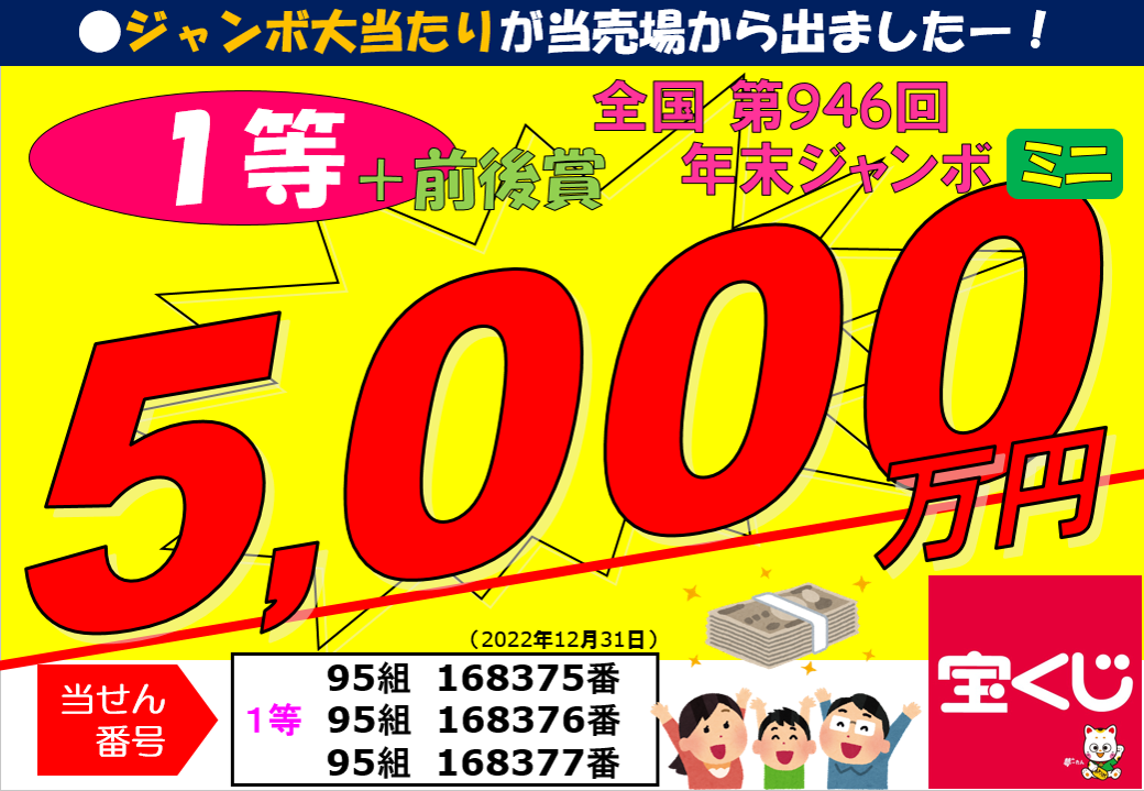 第946回年末ジャンボミニ1等前後賞10,000,000円