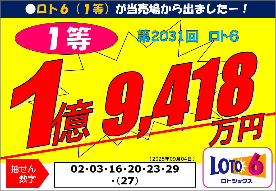 第2031回ロト61等194,184,800円