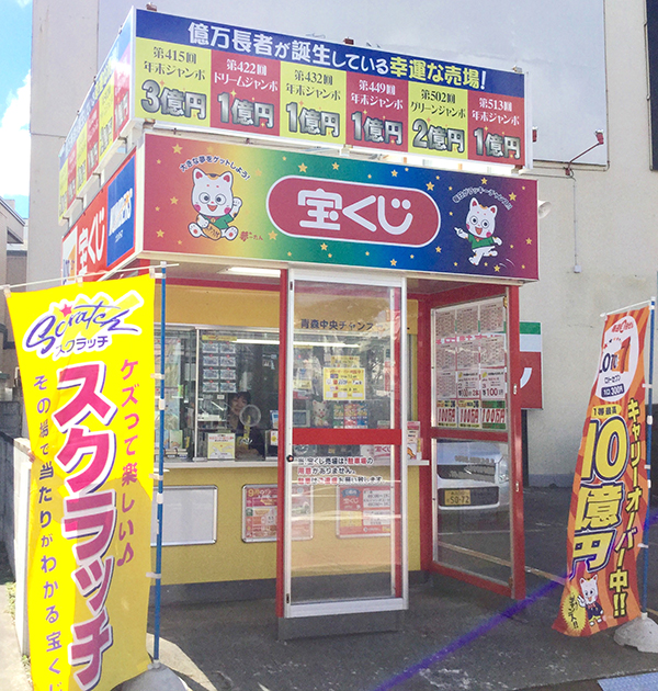 日本銀行青森支店の隣にあり、ジャンボ宝くじに強い歴史ある宝くじ売場です。 ジャンボ宝くじで、これまで億万長者が6名も誕生しています!(2000年以降) つぎの億万長者はあなたかも。ご来店を心よりお待ちしております。