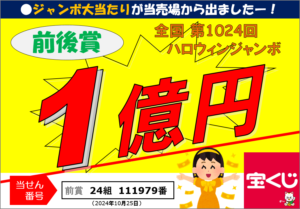 第1024回ハロウィンジャンボ1等前後賞100,000,000円