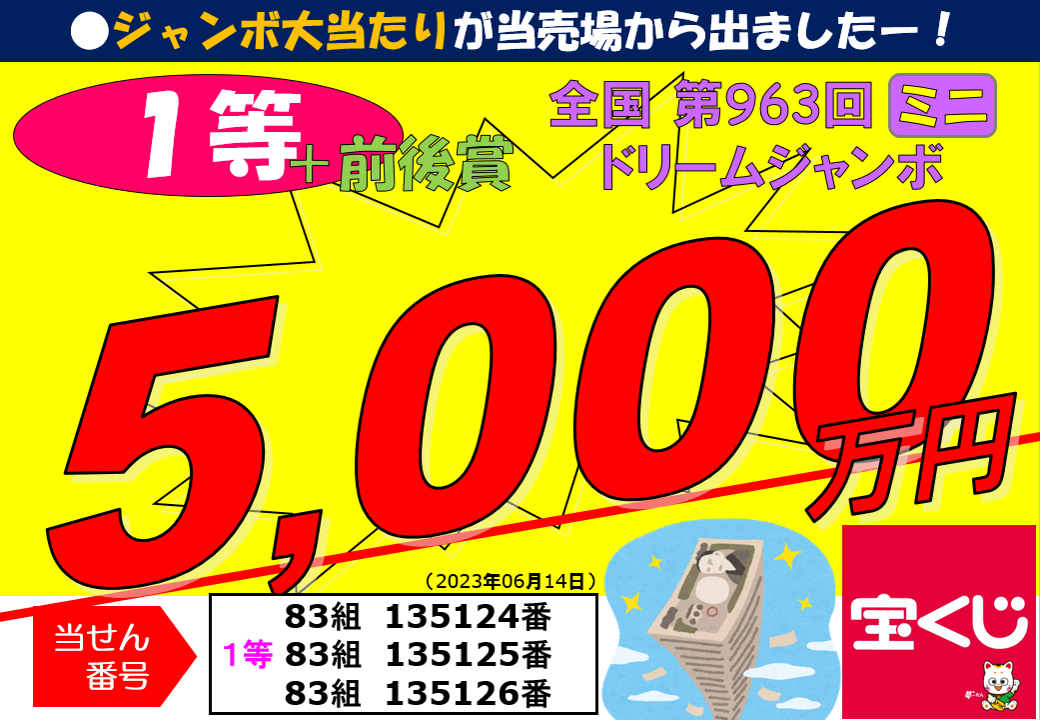 第963回ドリームジャンボミニ 1等 5千万円(前後賞含む)