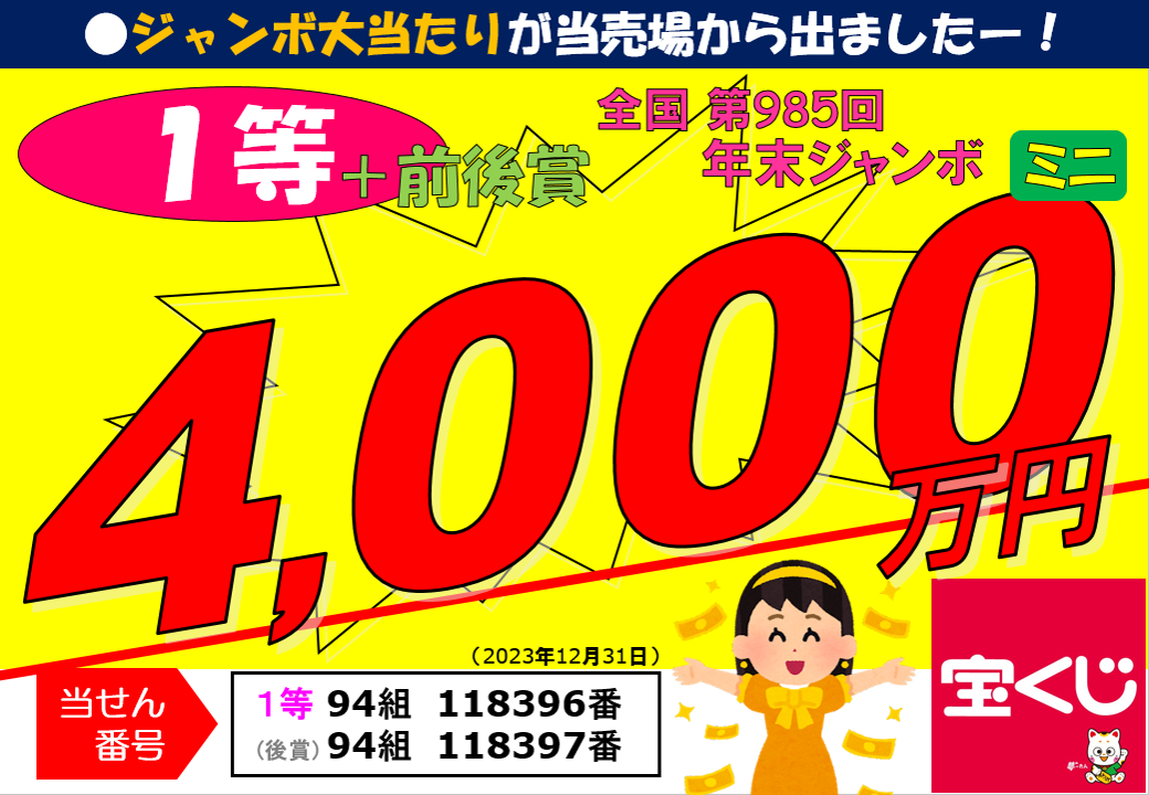 ジャンボ販売期間中・年末年始などは状況に応じ、営業時間を変更する場合がございます。