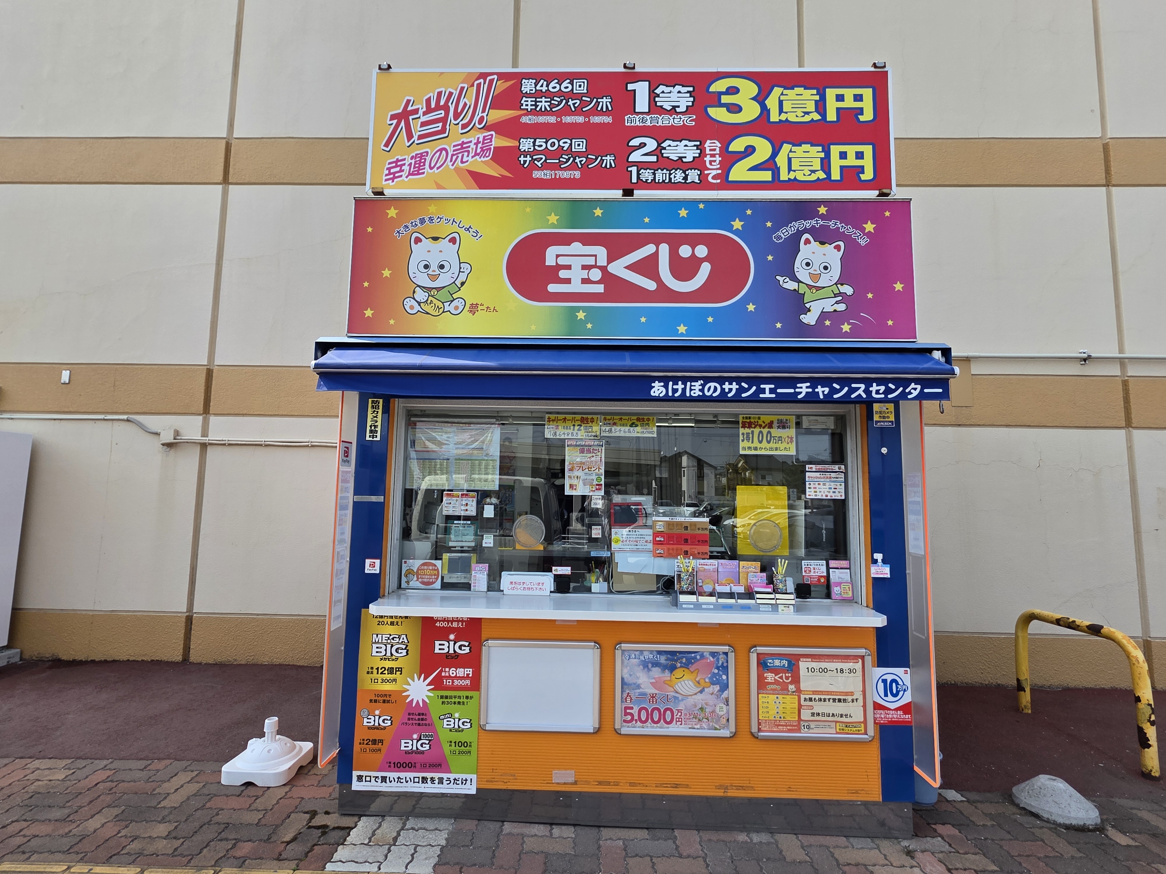 当売場は2002年年末ジャンボで1等3億円、2006年サマージャンボで1等前後賞2本で1億円、2等1億円(合わせて2億円)、2013年ドリームジャンボで1等前後賞合わせて1億1千万円の大当たりが出た売場です!そろそろ新たな億万長者が生まれる頃!