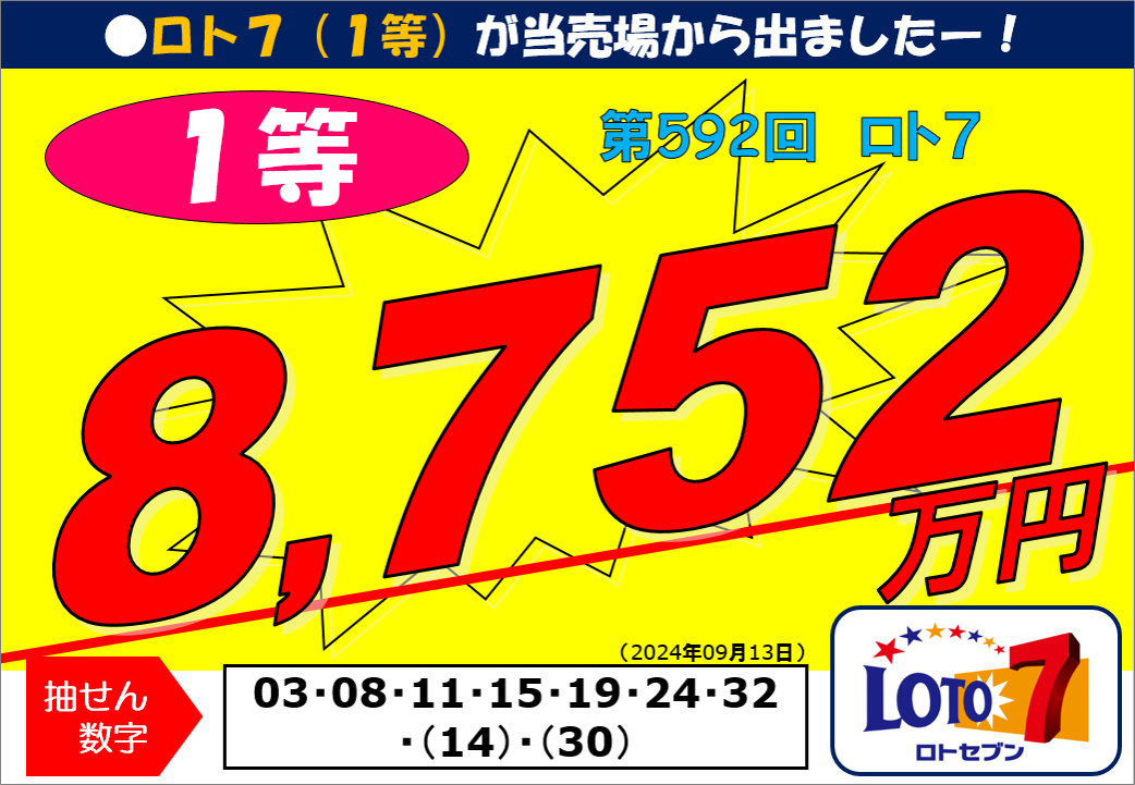 2019年夏にはロト7で1等3億2592万円が大的中!