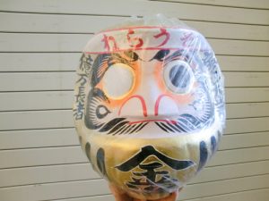 特注の金運ダルマに宝くじをスリスリすれば大願が叶うかも。