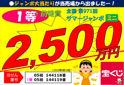 第971回サマージャンボミニ1等20,000,000円