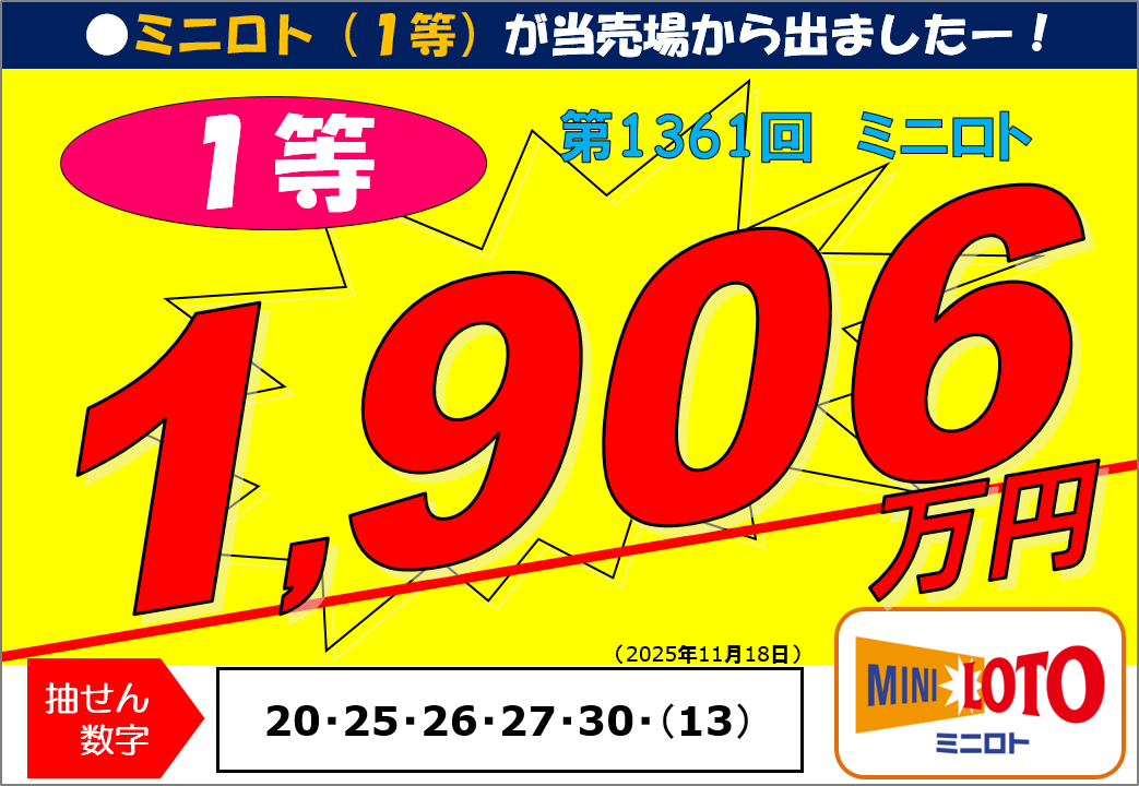 第1361回ミニロト1等19,064,800円