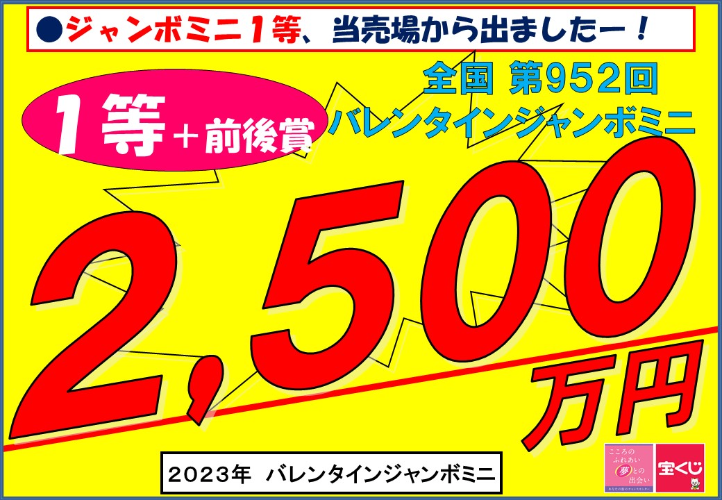 第952回バレンタインジャンボミニ1等前後賞5,000,000円