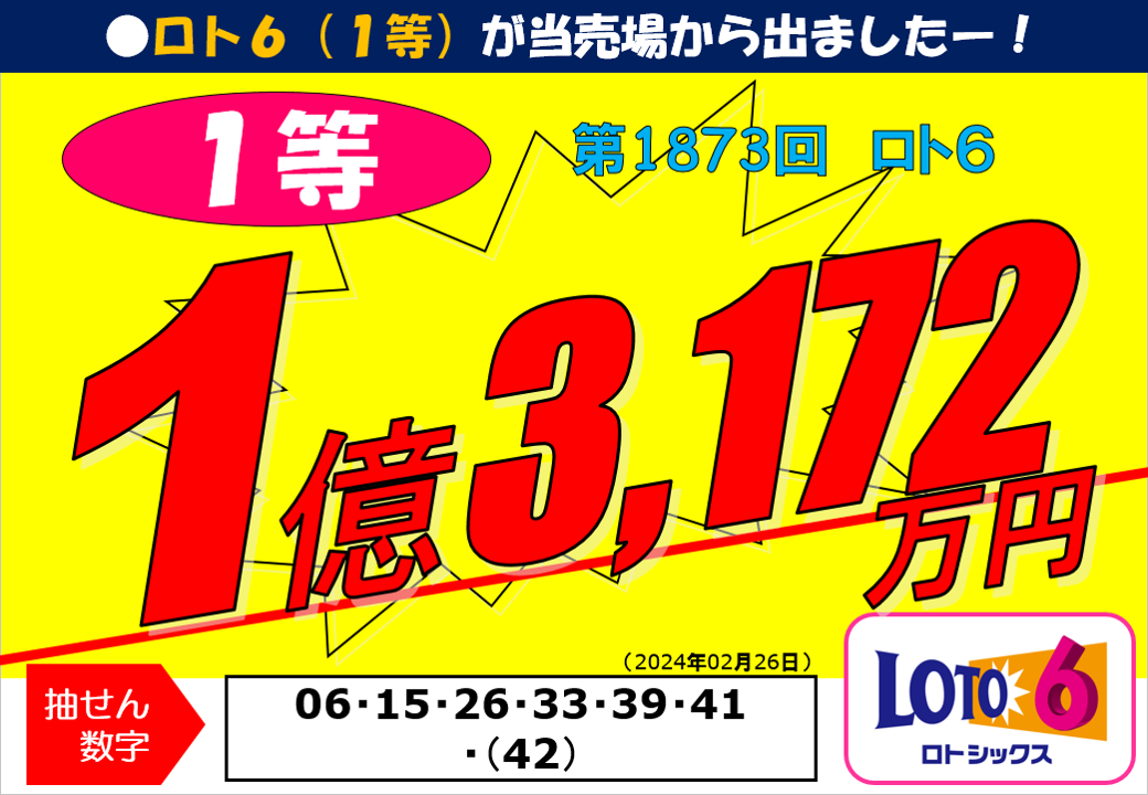 出ました大当たり!! 第258回ロト7で、1等 3億599万円が見事大当たり!!