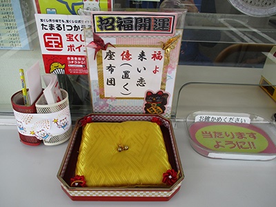 売場に設置の「開運 億(置く)座布団」に宝くじを置いて祈願すれば当たるかも・・・