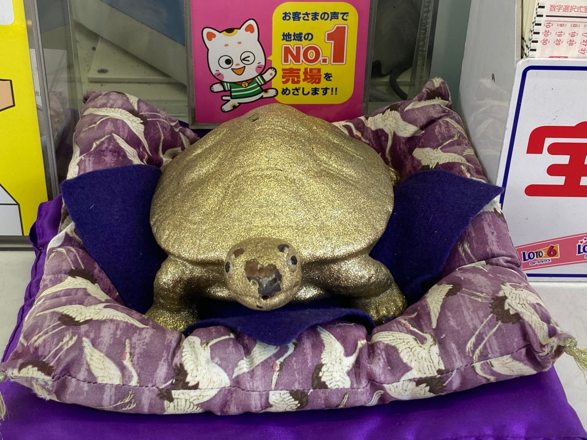 店頭にはもちろん「幸運の当たり亀」。次の億万長者を呼び込んでくれること間違いなし!皆さまのご来店をお待ちしています。