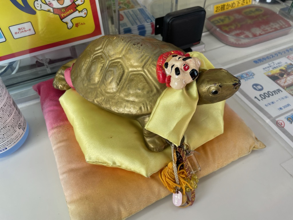 店頭には、お札をお祀りし、「幸運の当たり亀」が鎮座しています。ぜひ、ご来店ください。