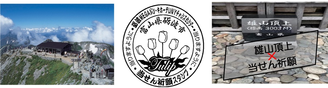 店長は日本3霊山の立山連峰・雄山の山頂3,003mにおいて、県内の高額当せん祈願をしていました。「チューリップスタンプ」を買った宝くじ袋に押印し、幸運を願ってみられ~