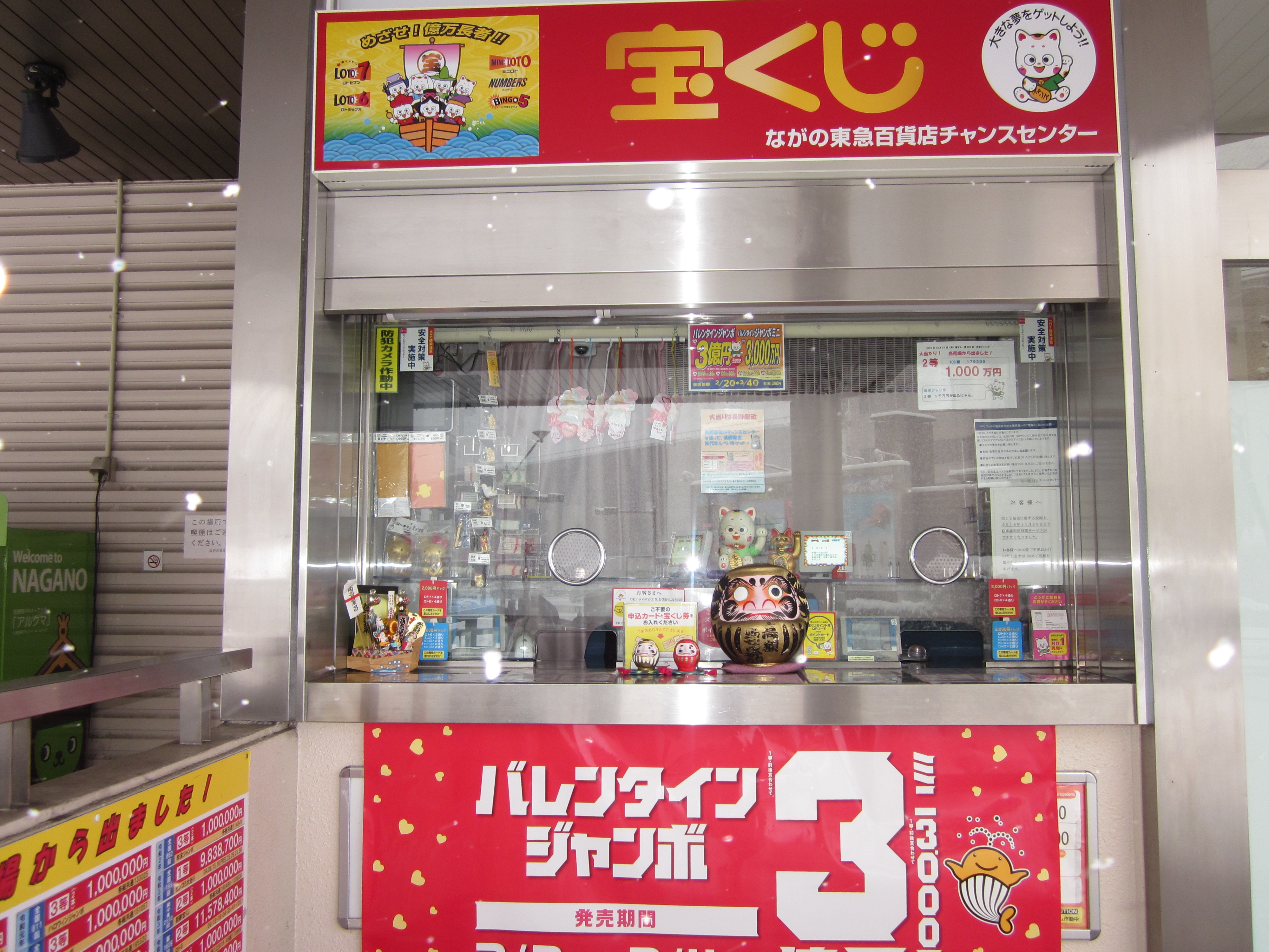 「遠くとも一度は詣れ善光寺」全国的な人気を誇るパワースポット善光寺最寄の宝くじ売場です。JR長野駅前、ながの東急百貨店の入り口横にあります。
