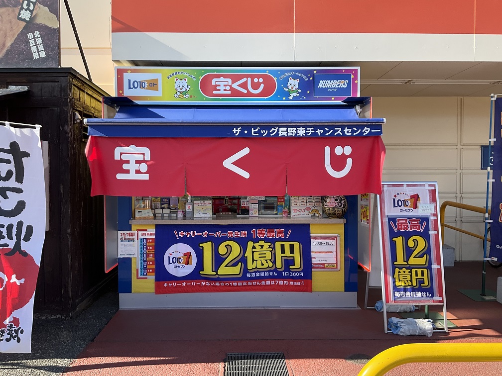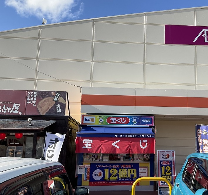 あの熱狂の長野オリンピック、アクアウィング会場(長野運動公園)から車で2分ザ・ビッグ長野東店に有る宝くじ売場です。