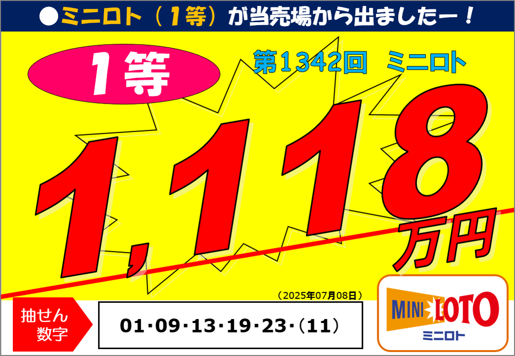 2008年6月以降、100万以上の高額当せん総額はなんと11億1,255万円!