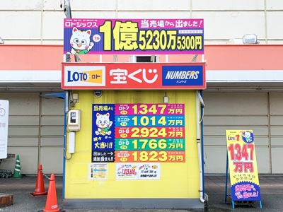 2019年の「ロト6/1等/1億5200万円」をはじめ、ミニロト・ロト6・ロト7で1000万円以上の当せんが6本出ており、「ロトに強い」として地元の宝くじファンに根強い人気がある宝くじ売場です。